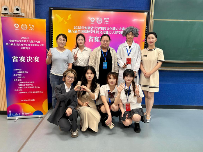 近日,2025年安徽省大学生跨文化能力大赛获奖名单公布,我校学子获团体赛一等奖2项、三等奖2项,个人赛二等奖1项、三等奖1项。学校获“优秀组织奖”,6位教师获“优秀指导教师奖”。
