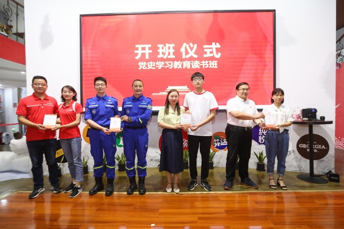 今年是中国共产党成立一百周年,也是“十四五”开局之年和全面建设社会主义现代化国家新征程开启之年。为深入学习党史,歌颂党的光辉历程,激励师生党员及企业员工坚定理想信念,凝聚磅礴力量。6月24日下午,合肥学院先进制造工程学院党委、马克思主义学院直属党支部与太古可口可乐公司总支委、合肥市蓝天救援队支委、统一企业有限公司支委联合开展了“党建引领聚合力,结对共建促发展”的主题党日活动。合肥学院先进制造工程学院党委书记杜娟、马克思主义学院院长胡艳萍,太古可口可乐公司党总支书记夏敏、人力资源总监贾真珍,蓝天救援队队长苏琴、支部书记刘晓东,统一企业有限公司工会主席阚冬芹、支部书记丁伟伟及五家单位的党员代表共50余人参加了本次活动。
