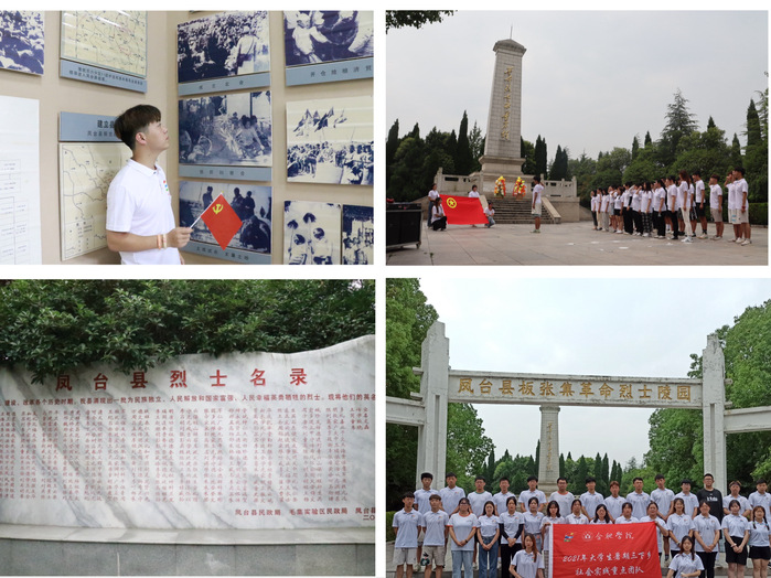 为深切缅怀革命烈士,弘扬革命精神,7月19日上午,队员们来到了凤台县板张集革命烈士陵园,怀着崇高的敬意向革命烈士敬献花篮、默哀致敬,并在烈士墓前庄严宣誓。在纪念馆内,队员们观看历史图片、烈士遗物,聆听革命烈士的英勇斗争事迹。“作为新时代青年,我们一定会继承先辈艰苦奋斗的光荣传统,赓续爱党爱国的精神,努力奋斗,刻苦磨炼,服务社会。”参观结束后,孔伟亮同学难掩激动之情。