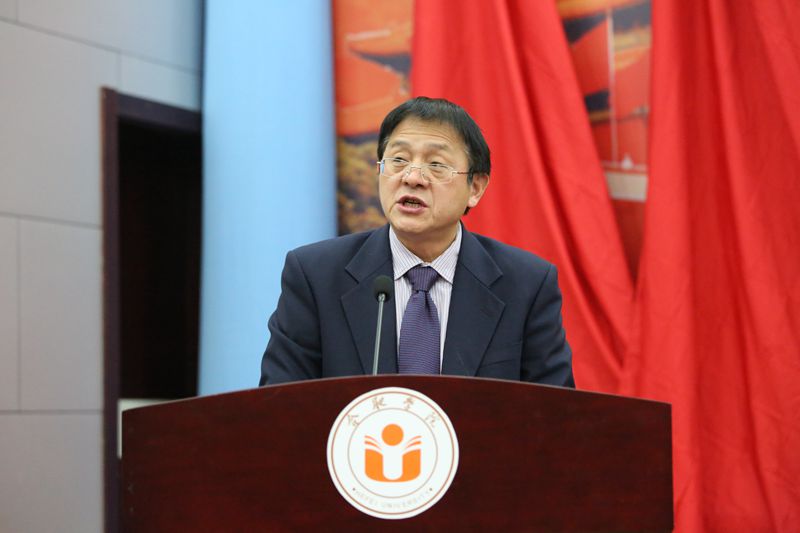 合肥学院工会主席崔国庆代表校群团组织致辞,省政协委员、民革合肥市委副主委、艺术设计系主任谢海涛代表民主党派和无党派知识分子联谊会致辞。
