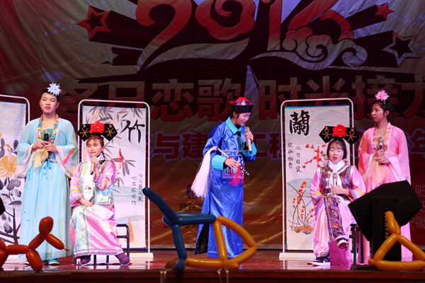 晚会在激情四射、动感十足的双人舞蹈《Dangerous》中拉开帷幕,六盏聚光灯汇聚舞台中央,悠扬浓厚的萨克斯配合不老经典《我心永恒》瞬间唤醒了观众的双耳。随后,孔津京凭借其超高的音准,以一首《死了都要爱》带动全场氛围,声嘶力竭的喊叫响彻礼堂,现场观众不觉为之震惊。紧接着,中文系老师王玉琴独唱《绒花》,粉色长袍下的歌喉更加温婉动人。朗诵表演《朱子家训》,在回顾千年前朱子谆谆教诲的同时,也让观众深深地沉浸在博大精深的国学思想中。古琴曲《梅花三弄》,传神的演绎尽显中文学子的风采。小品表演《倩女幽魂》,利用反串形象成功地突破了经典的塑造,传统故事的现代演绎令观众眼前一亮,一度将现场气氛推向高潮,引得全场爆笑,掌声雷动。此外,激情洋溢的B-BOX、性感帅气的现代舞《IT’ ME》也让现场观众尖叫连连,掌声不断。最终,晚会在一曲古典舞《玉生烟》的优美舞姿中圆满落下帷幕。中文系党总支书记朱涛还以一幅对联,“校风系风班风学风考风教风,风气纯正,风尚高雅;勇气志气才气正气喜气和气,气象万千,气魄宏伟”对此次晚会给予了衷心的祝愿和美好的希冀。