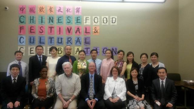 为推进合肥院校与美国布卢姆菲尔德学院的友好交流,同时促进中国饮食文化在海外的传播,我校七名访美学者协同合肥其他院校学者于纽约时间12日中午在布卢姆菲尔德学院泰伯大厅举办了一场别开生面的中国饮食文化节。布卢姆菲尔德学院Peter Jeong副校长、Tresmaine Grimes副校长、校理事会成员、部分学院教师等40余人受邀出席了本次活动。